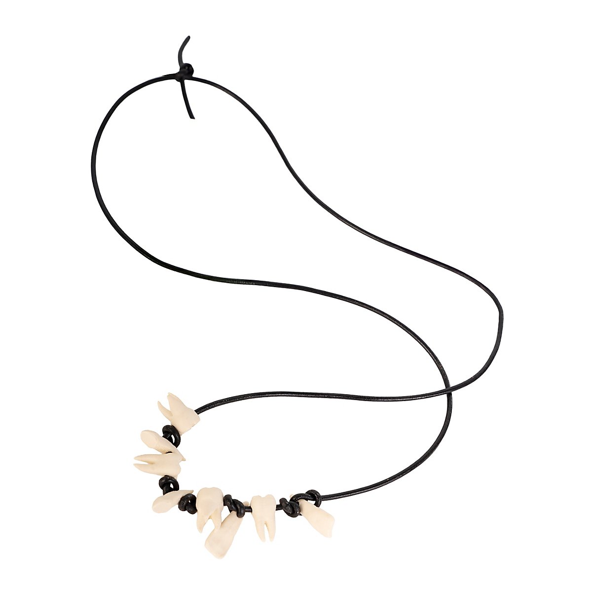 Ein Kette aus Menschenzähnen als Gruselschmuck für Halloween und Larp