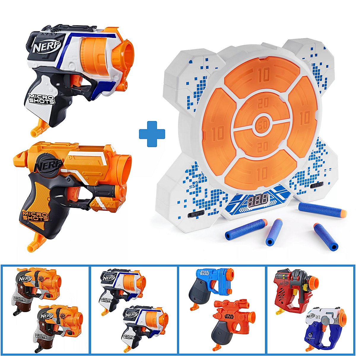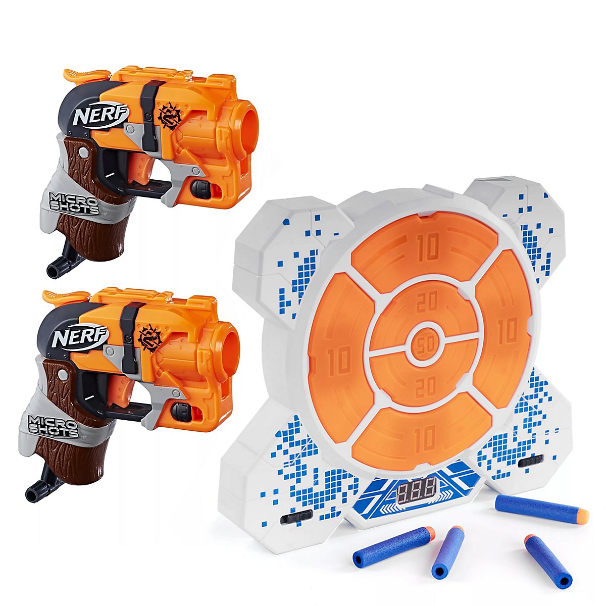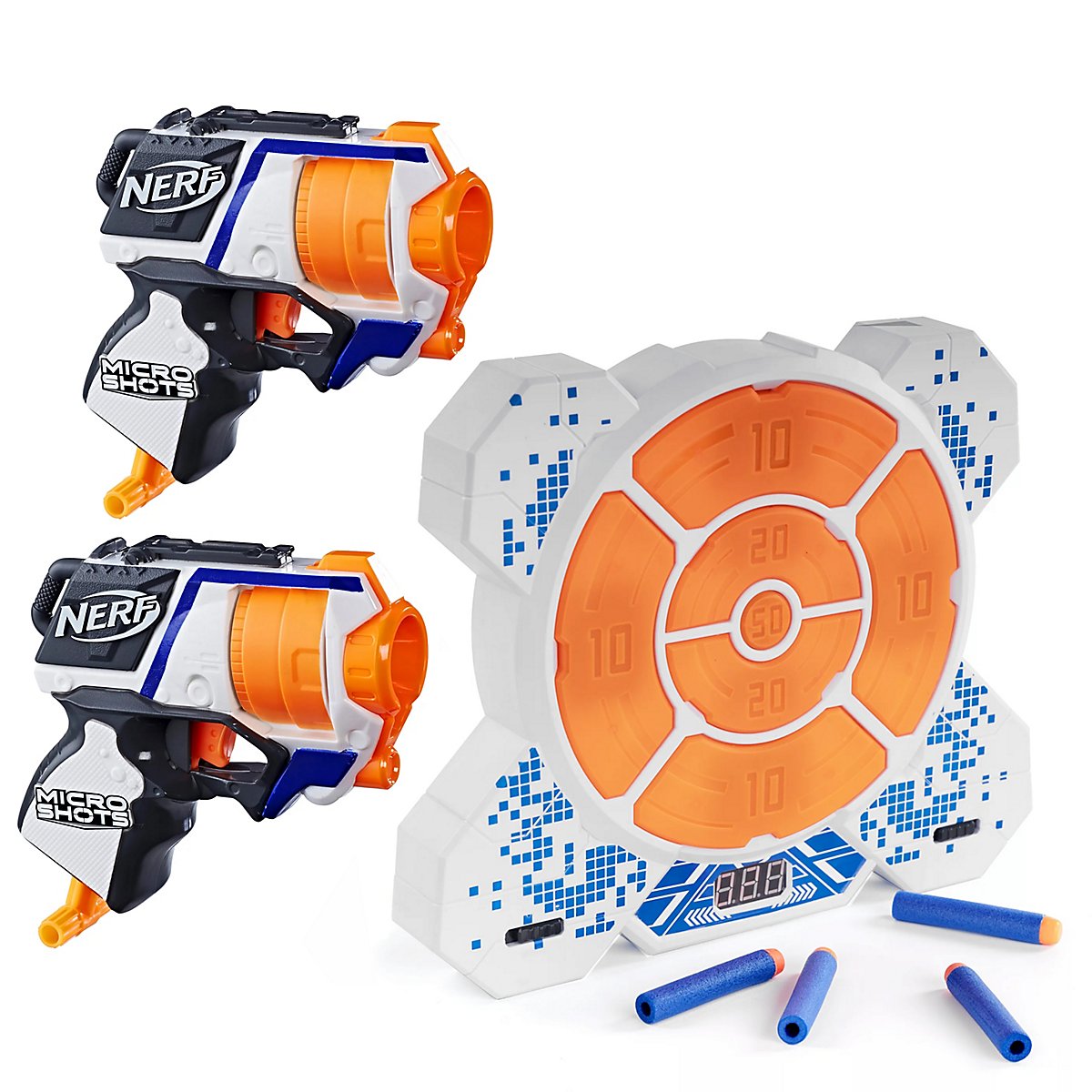 Action Bundle: 2x Nerf MicroShots + Elektronische Zielscheibe DX7 (5 Styles zur Wahl)