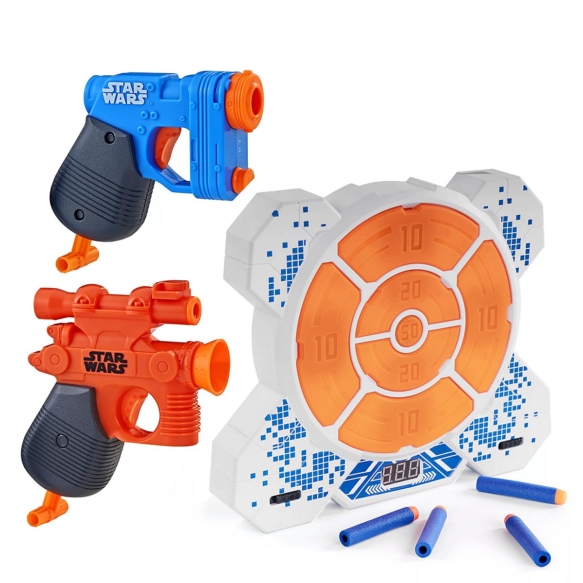 • Bundle aus 1x Elektronischer Zielscheibe DX7 und 2x Nerf MicroShot Blastern