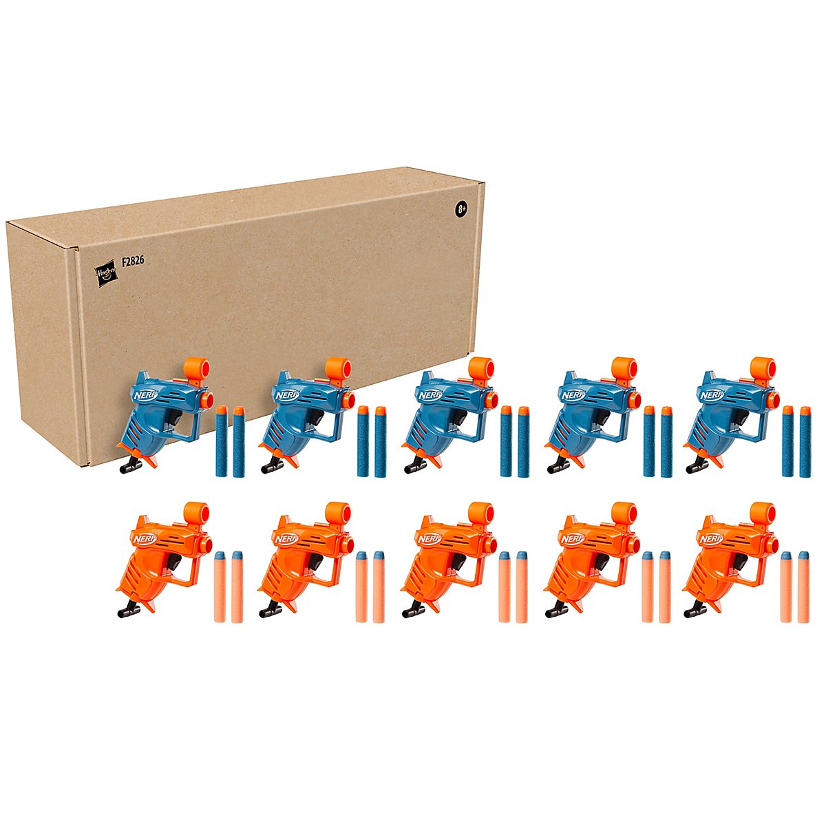 • 10er-Pack Blaster in zwei Teamfarben (5x Orange, 5x Blau)