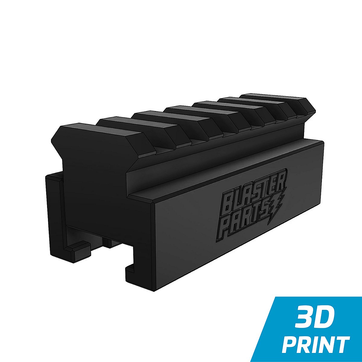 Mit diesem Adapter könnt ihr aus eurer NERF-Rail eine Picatinny-Rail mache, was es ermöglicht viele andere Standardaufsätze mit eurtem Blaster zu verbinden. Bei der Variante 1 sind die Stege durchgezogen.