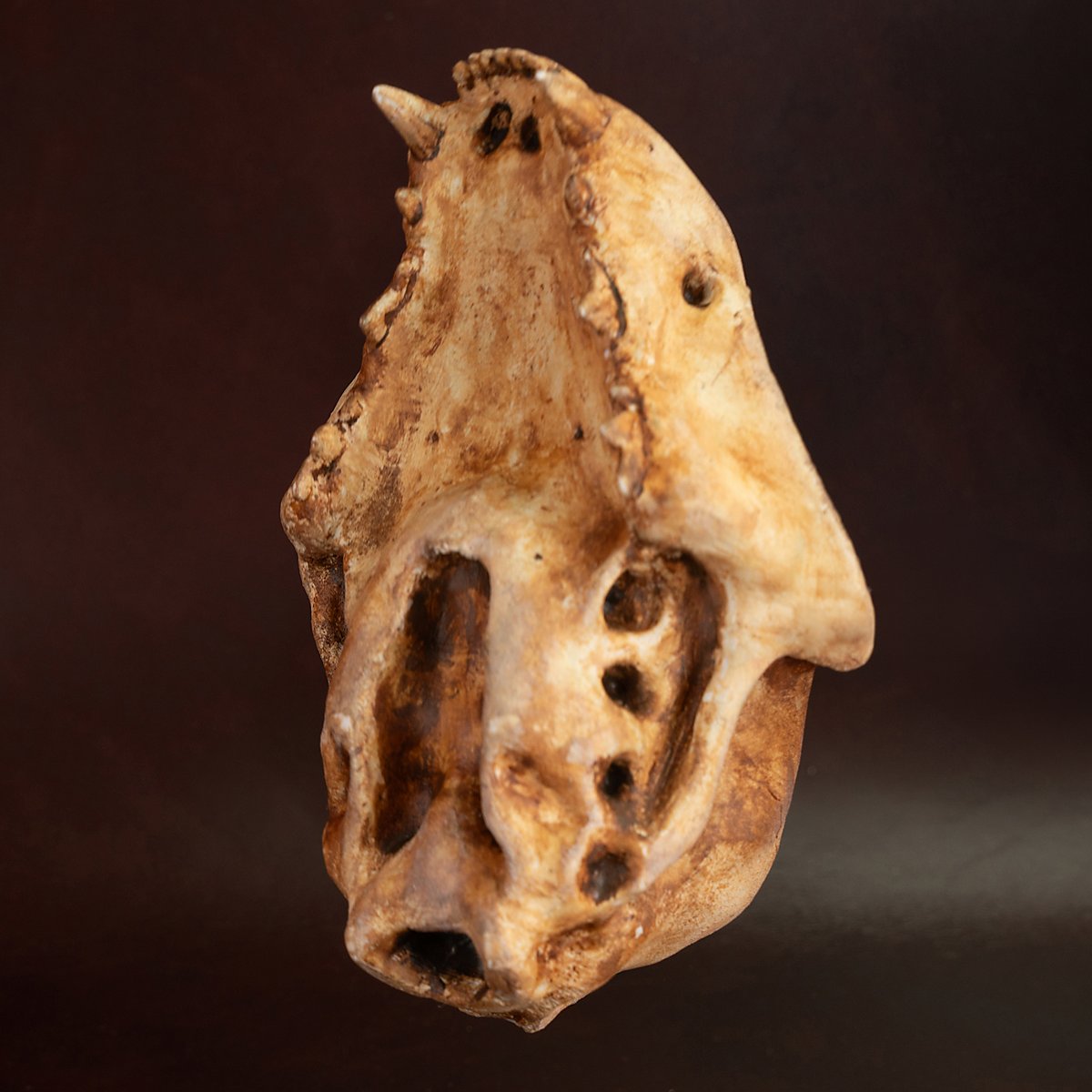 This 12cm large skull of a cat made from 3D-printed PLA is interesting for all witches, shamans, or even orcs and undead in LARP. The unpainted skull can easily be painted as desired and thus becomes a unique eye-catcher for your attire. But even as a standing object in the camp, the realistic cat skull makes quite an impression.
