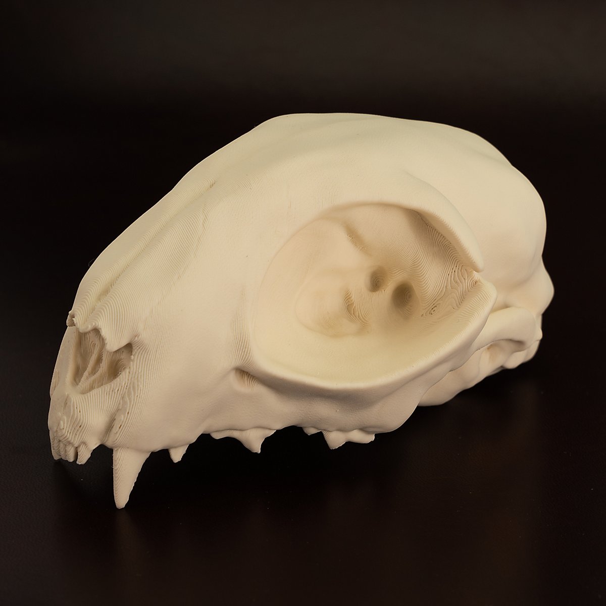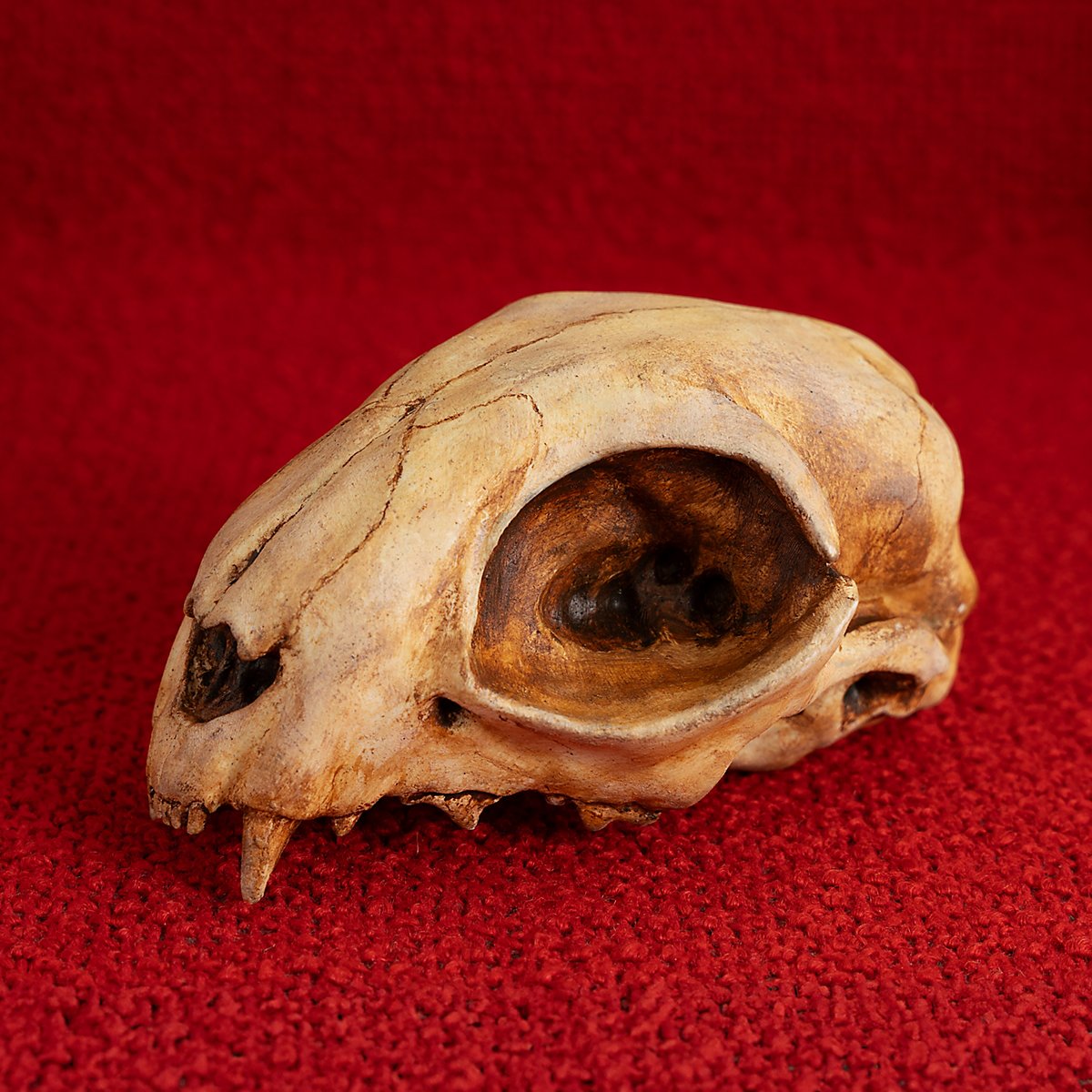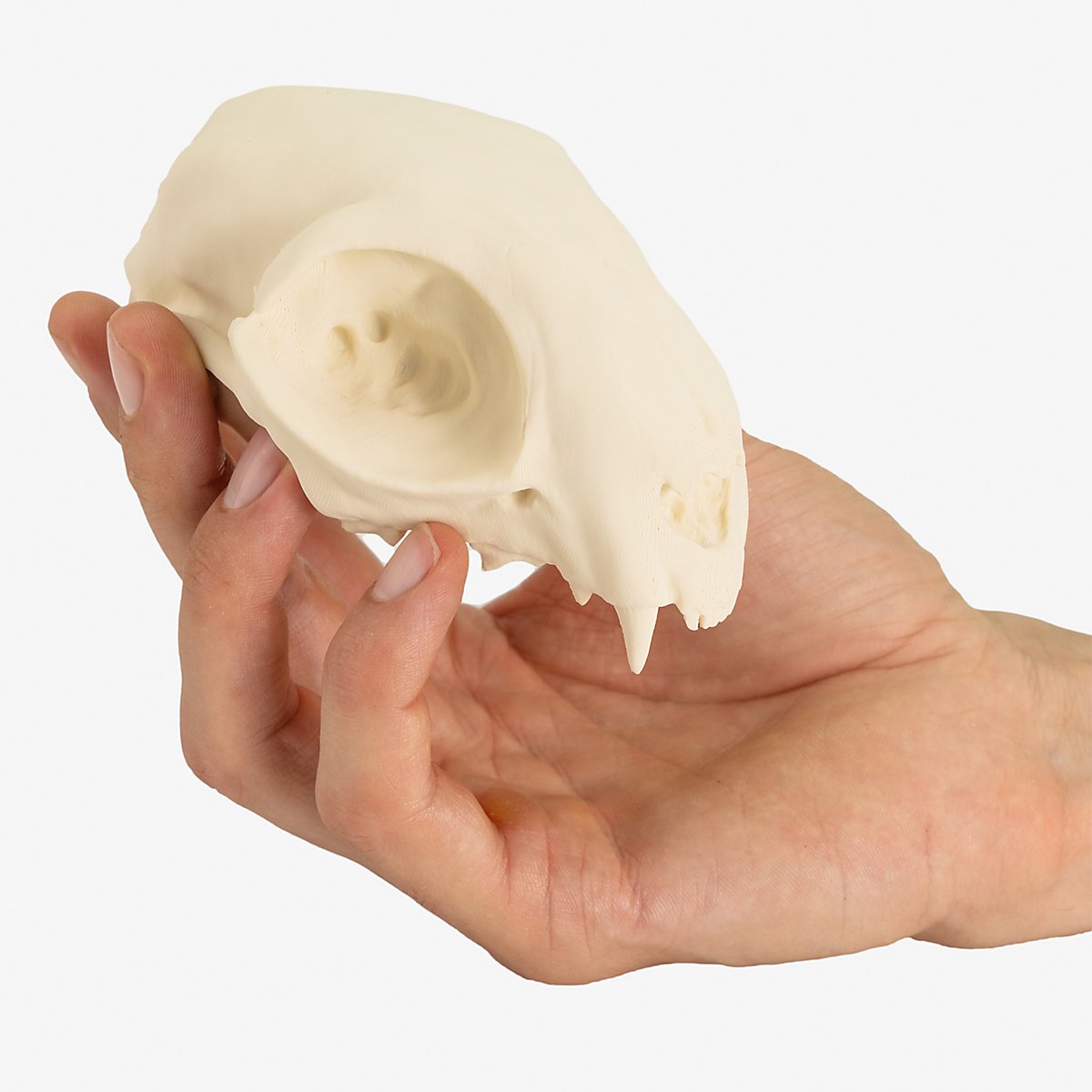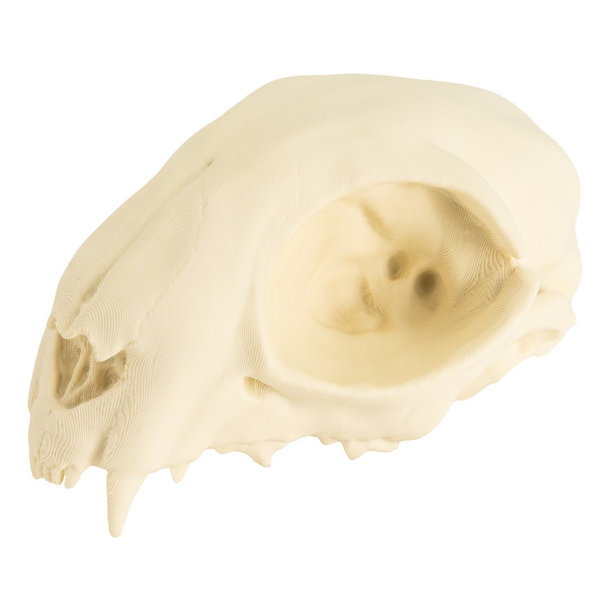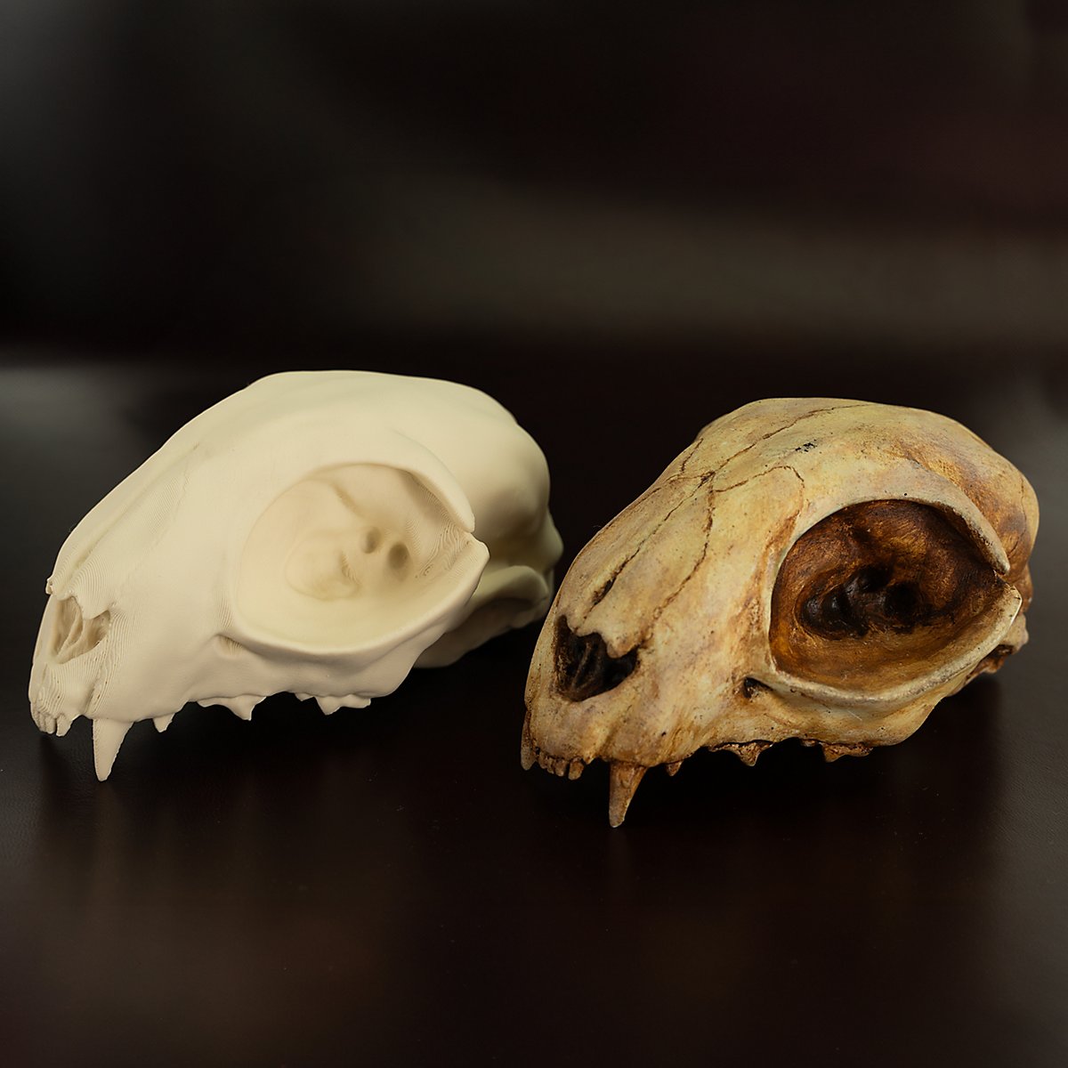 This 3D cat skull made of hard PLA is easy to paint for versatile use in LARP.