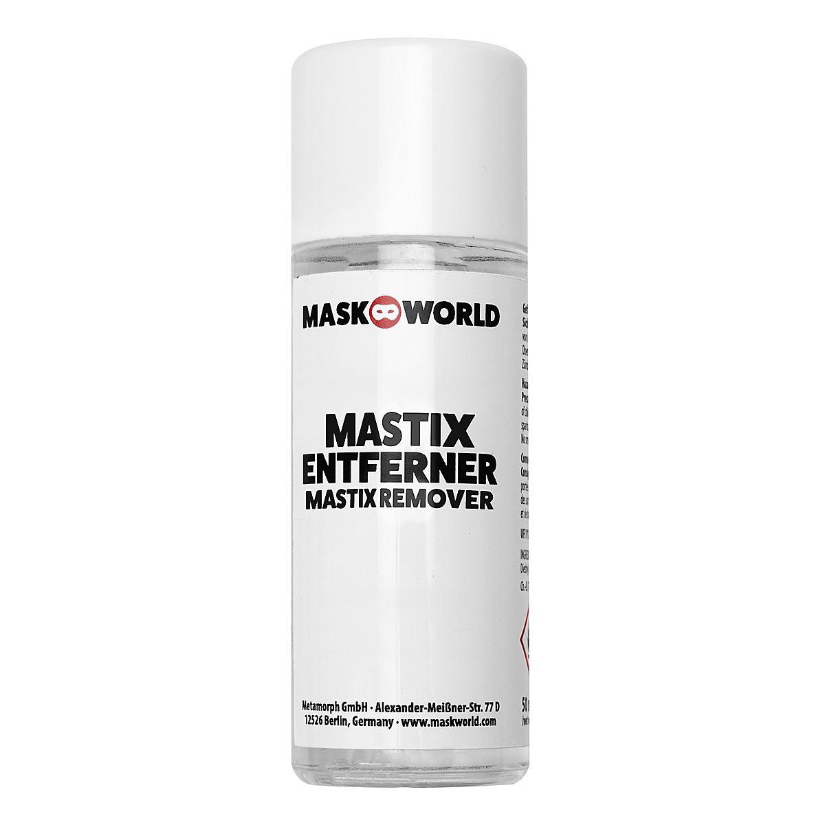 Use Mastix Remover to quickly and easily remove MASKWORLD Mastix Spirit Gum and all other types of spirit gum from your skin. It is also an ideal cleaning agent for latex prosthetic pieces or beards. "Made in Germany," MASKWORLD Mastix spirit gum can be used up to 12 months after opening.
