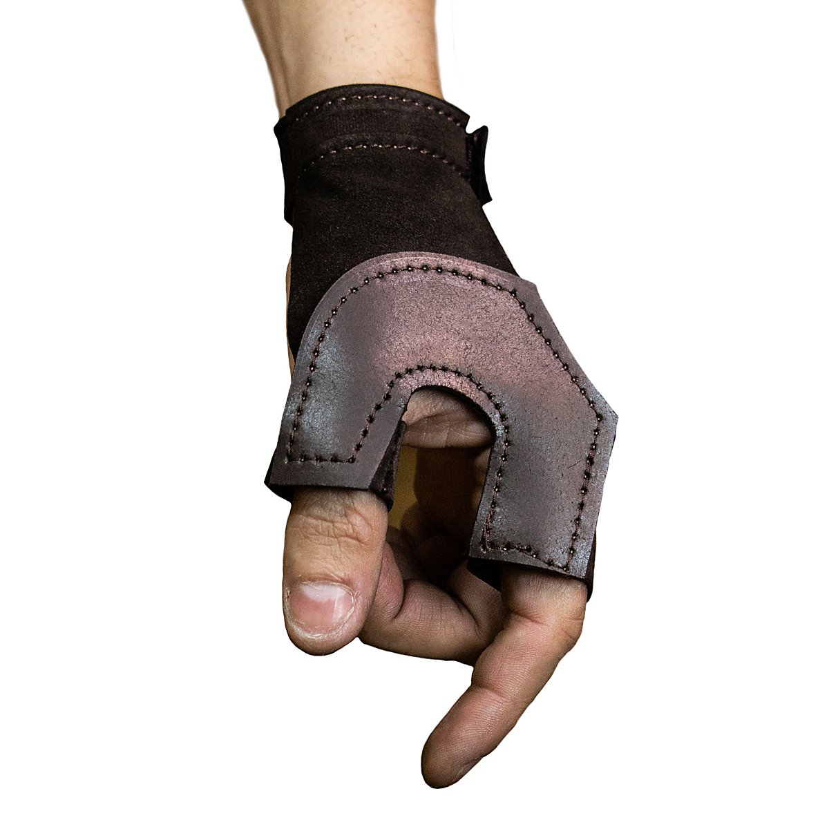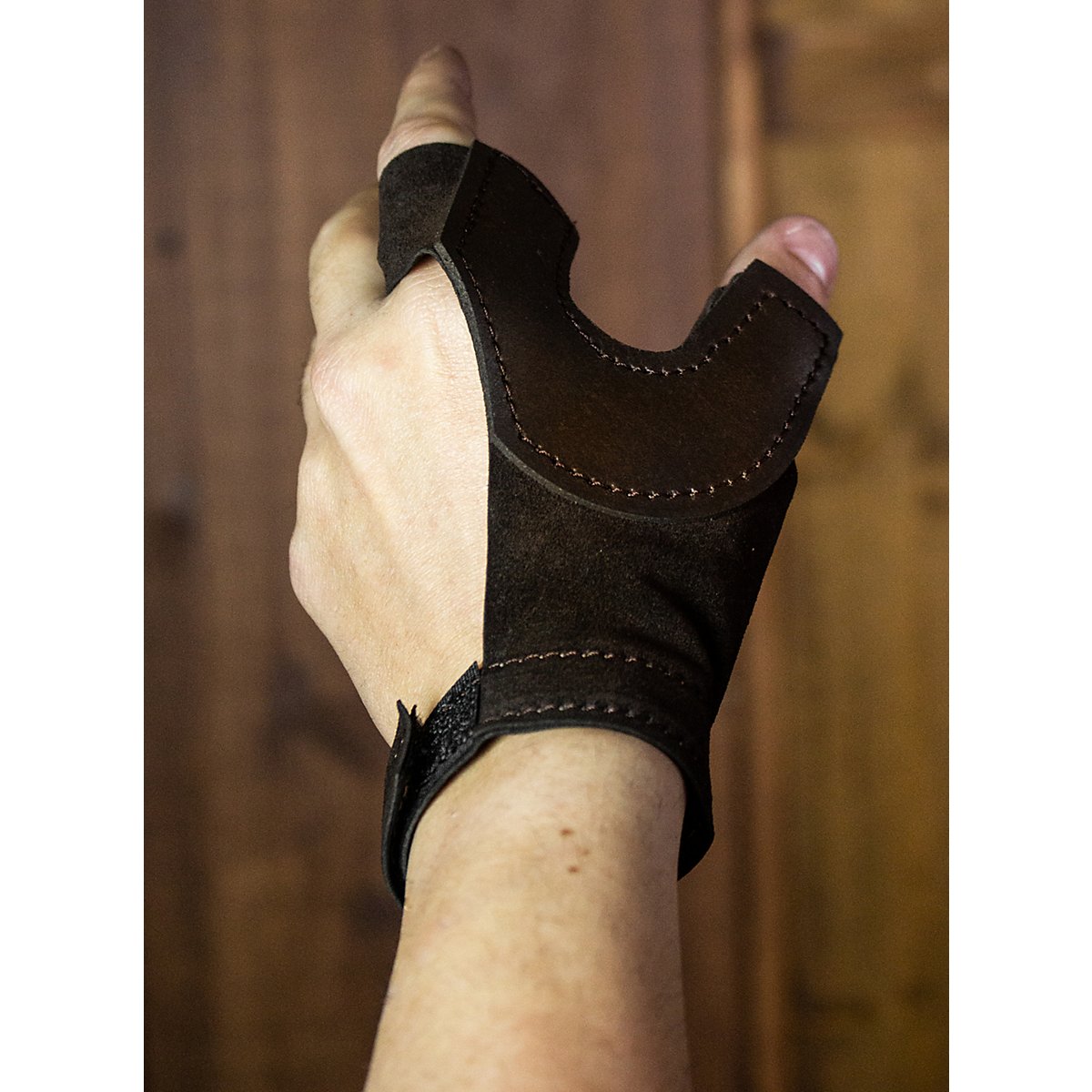 Ce gant de tir à l'arc à trois doigts offre une protection parfaite de la main. Fabriqué en cuir de haute qualité, cousu à la main, et ajustable au poignet avec du velcro.