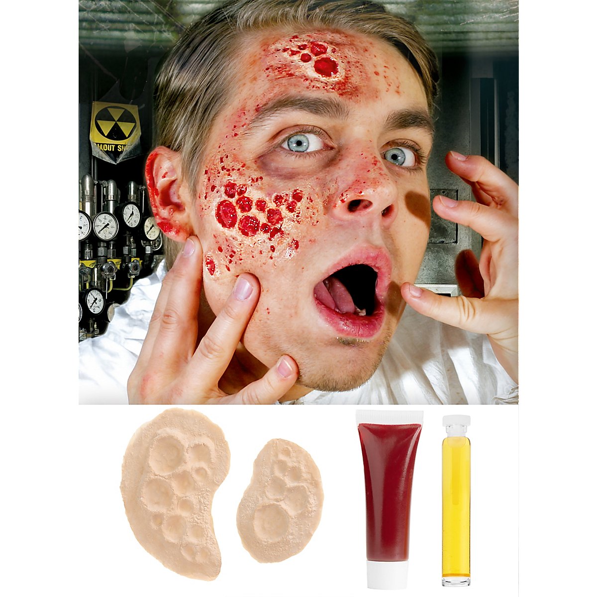 Con questa applicazione professionale in lattice per ustioni da raggi, potrete trasformarvi rapidamente e facilmente in una vittima dei raggi, in un medico dell'orrore o in un altro personaggio della vostra immaginazione. Come tutti i prodotti MASKWORLD, questo set per ray burn è sottoposto a severi controlli di qualità per soddisfare la richiesta di un risultato di trasformazione professionale.