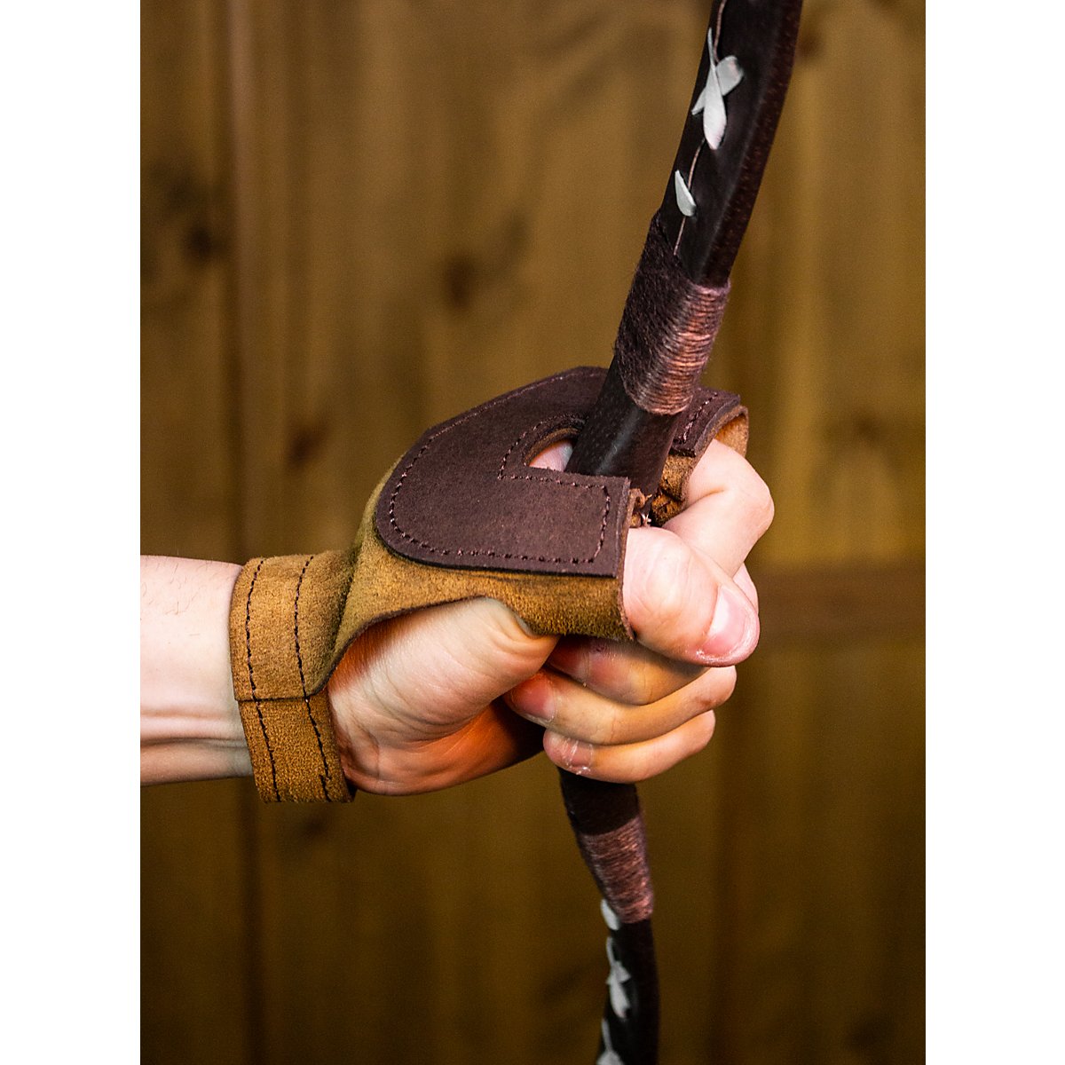 Questo guanto da tiro con l'arco offre una protezione perfetta per la mano dell'arciere. Realizzato in pelle di alta qualità, cucito a mano e regolabile al polso con chiusura in velcro.
