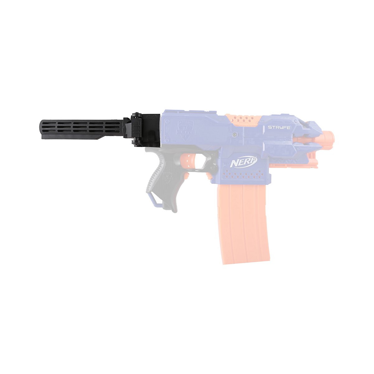 Il calcio di blaster è compatibile con i supporti dei blaster Nerf ed è facile da fissare. L'attacco tiene il supporto saldamente in posizione e garantisce che il pezzo possa essere rimosso con un semplice gesto del polso.